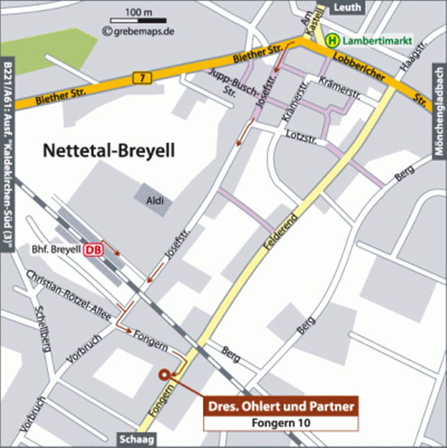 Sollten Sie für die kurze Strecke vom Bahnhof bis zur Praxis ein Taxi benötigen, so ist das Anrufsammeltaxi der Stadt Nettetal eine preisgünstige Alternative. Siehe Auswahlmenu.